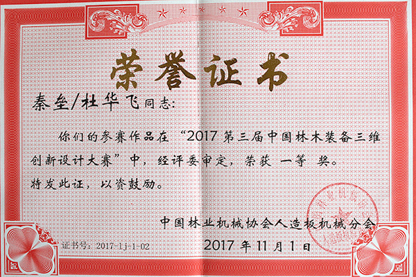 公司及公司科技人员受到中国林机协会 木材加工机械分会表彰
